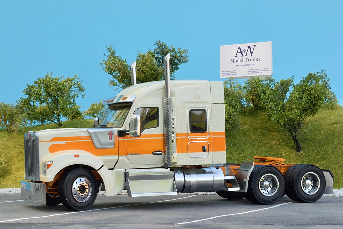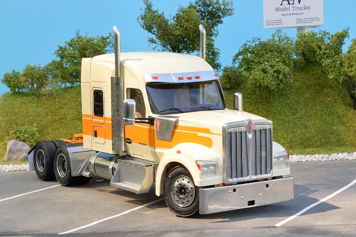 Everything you needed for assembling US W990 truck (sleeper cab) truck with using kits by A&N Model Trucks only.