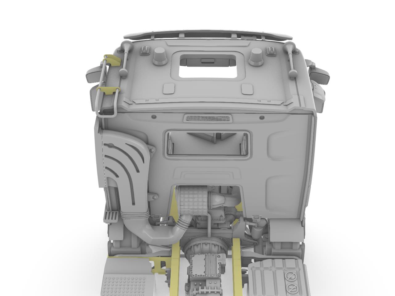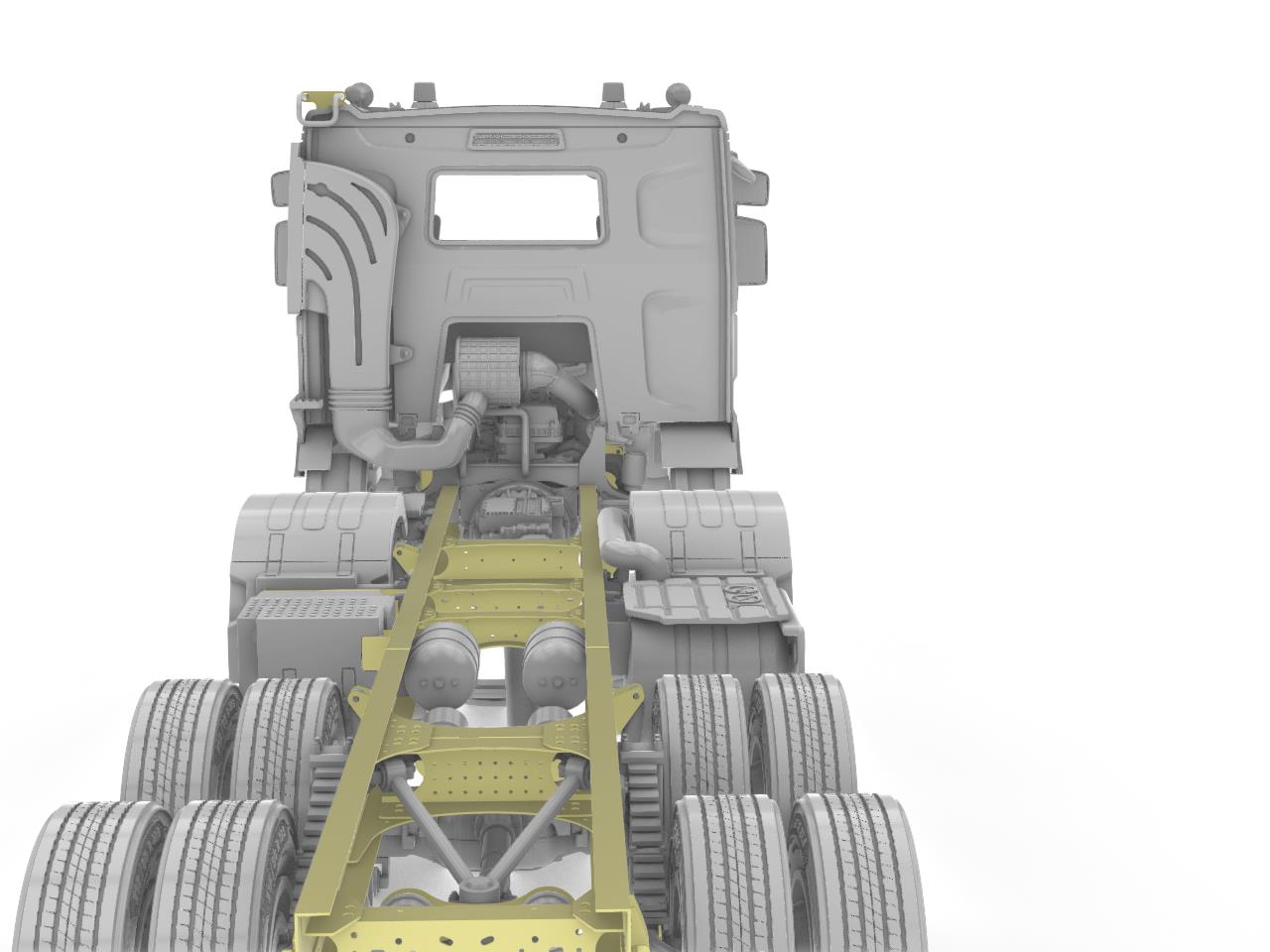 Highly detailed 8×4 leaf spring tandem chassis with 2 front steering axles.