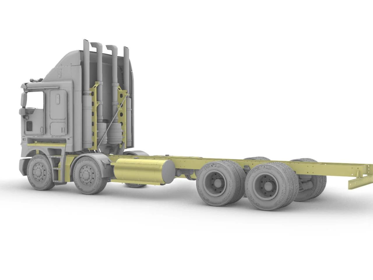 We highly recommend to use our photo-etched chassis kit, but you could use generic US chassis by Italeri (except Peterbilts 377/378 and Volvo VN).
