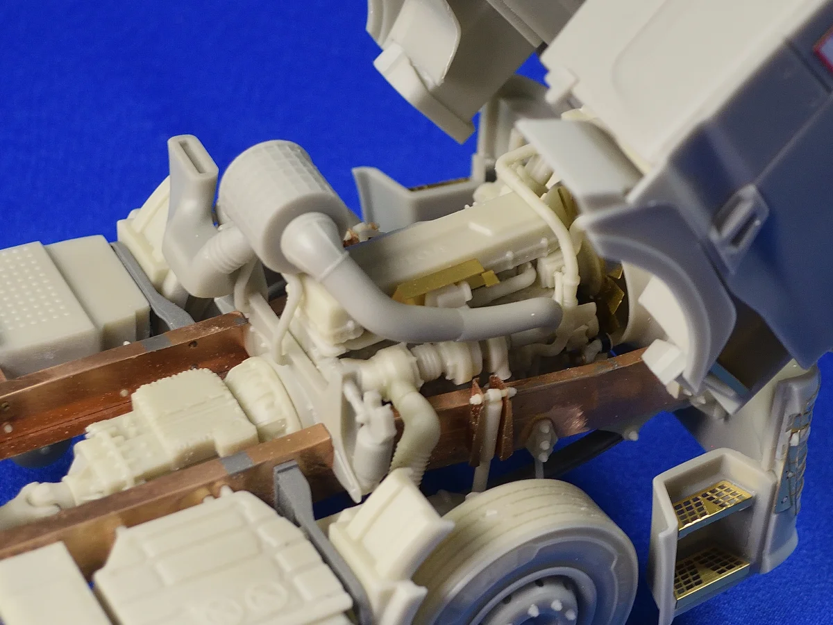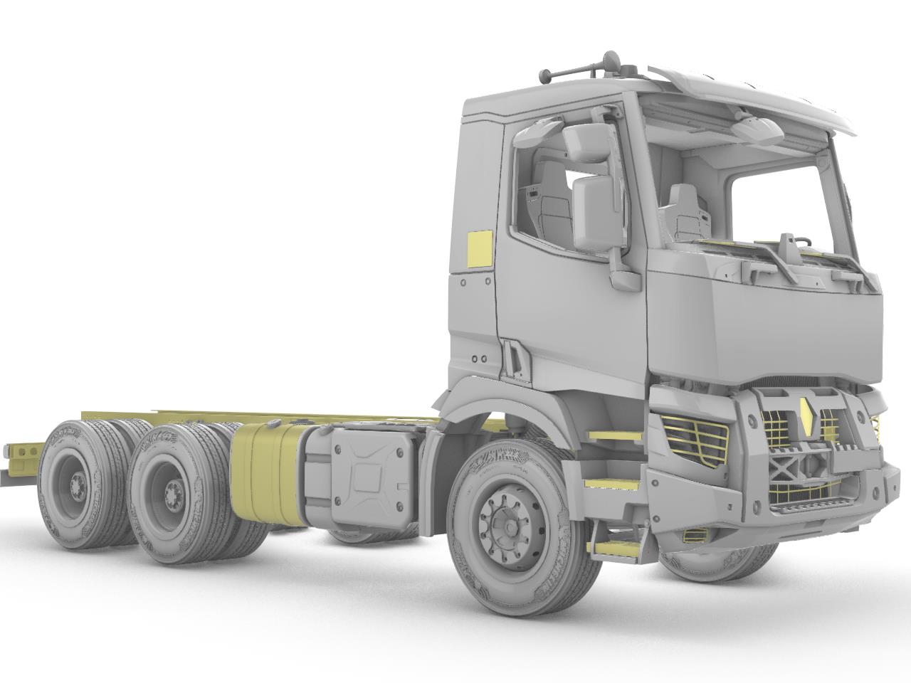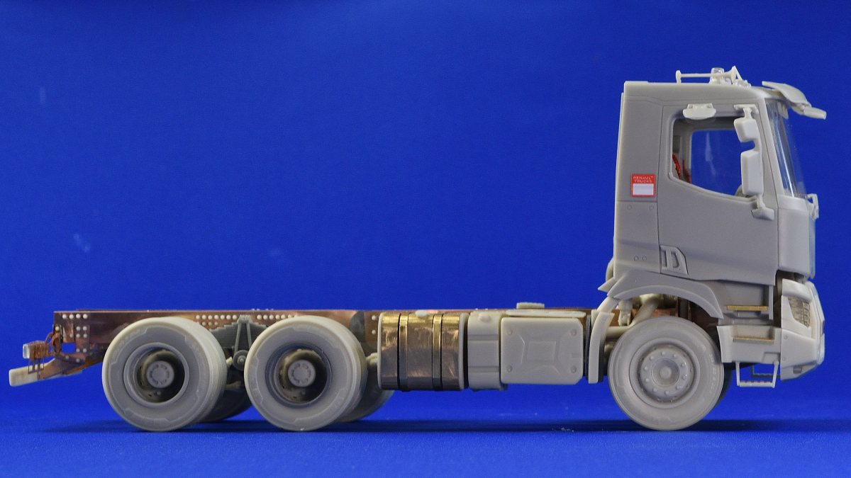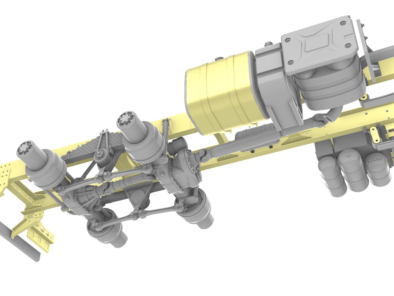 Highly detailed 6×4 leaf spring chassis for Swedish construction truck. Scale 1/24.