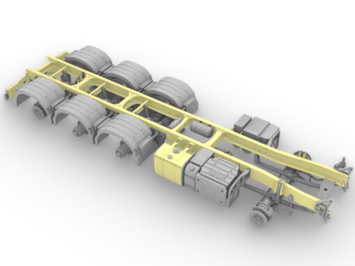 Highly detailed 8×4 air spring tridem chassis with lifting steering trailing axle.