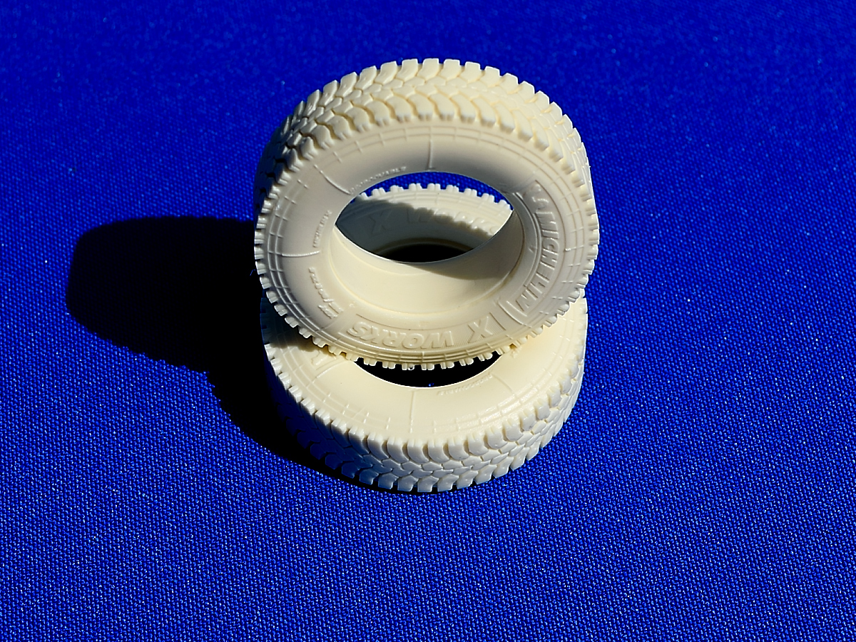 • Heavy tread rear tire 315/80 R22.5 (normal width). Scale 1/24 × 8